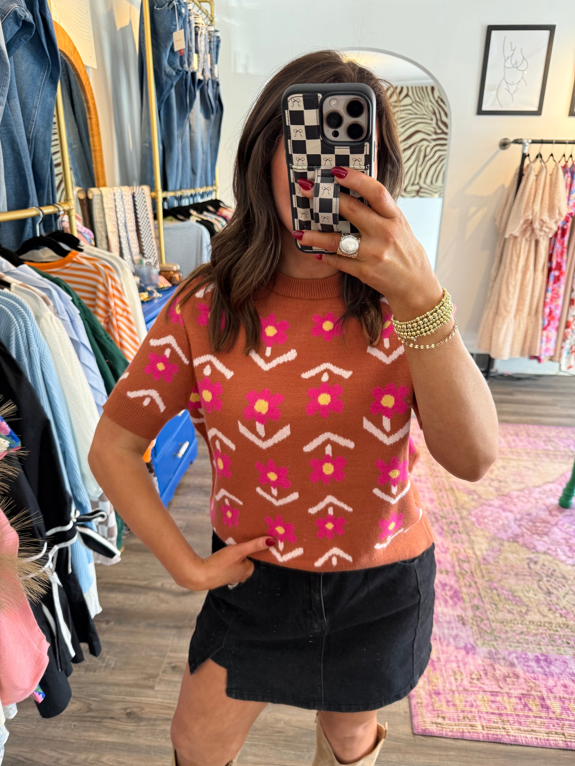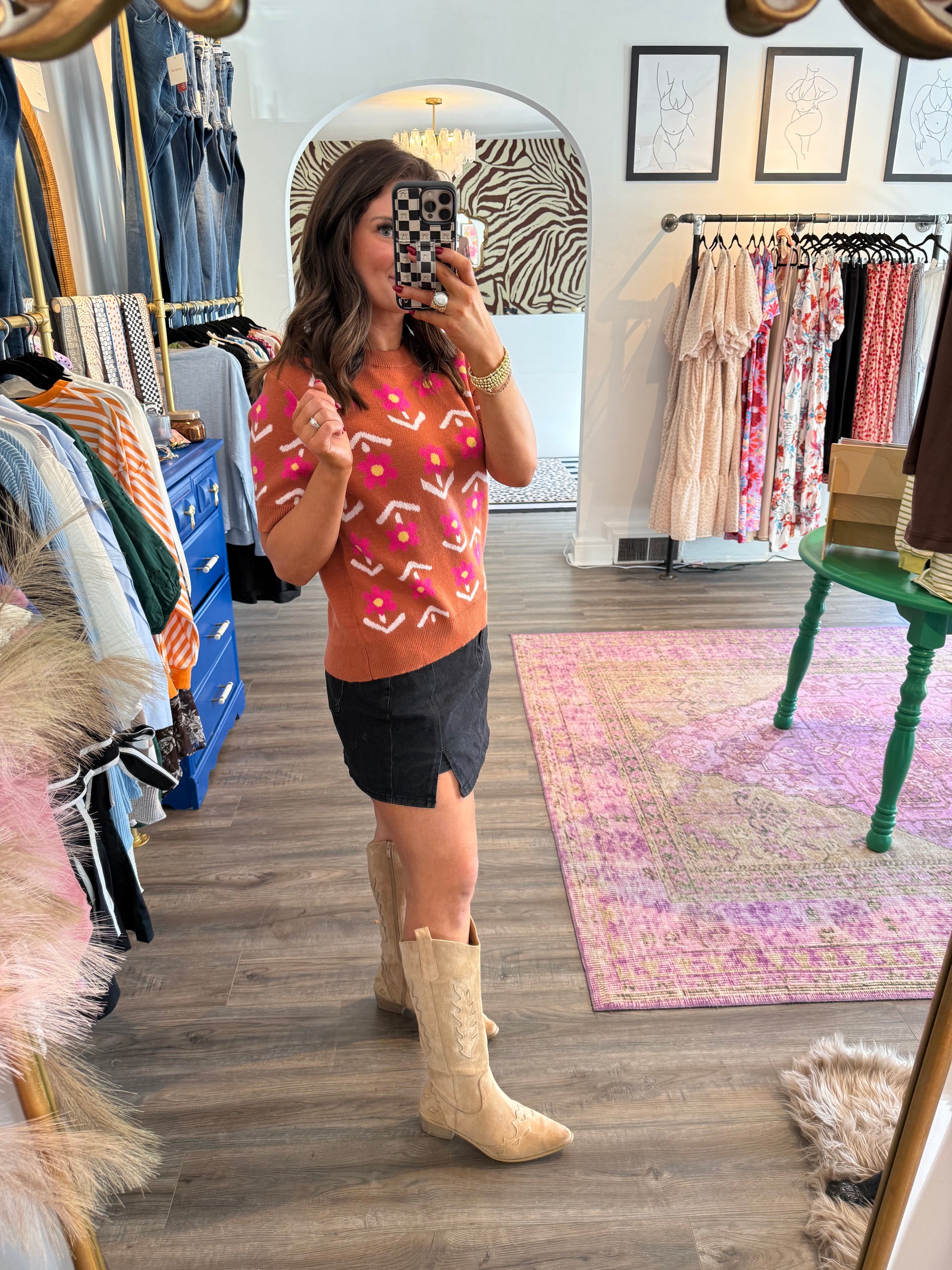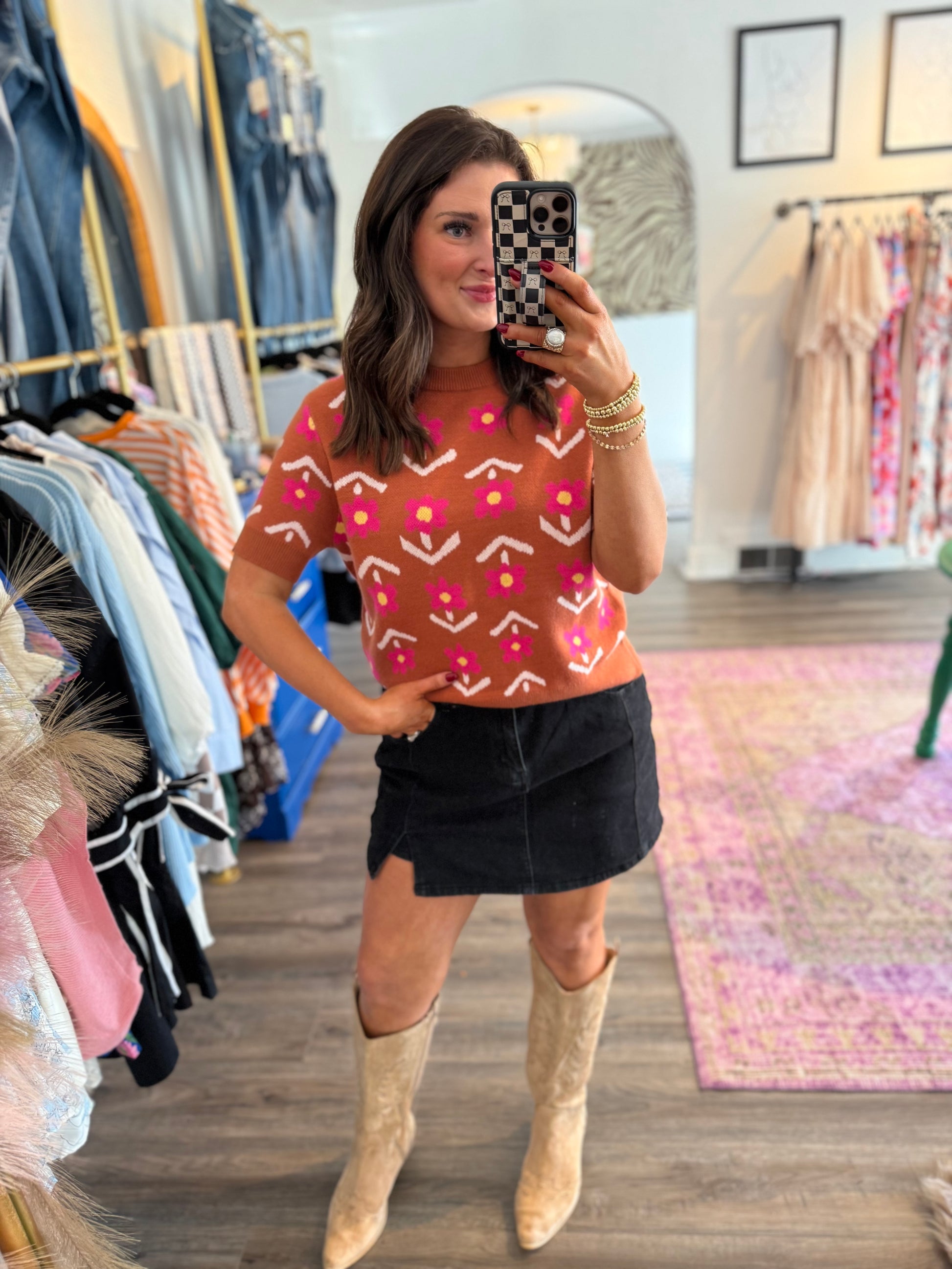 Step into fall with the Autumn Muse Sweater, a playful blend of cozy and chic. This short-sleeve blouse features a flattering fitted bodice and charming small puff sleeves in warm shades of brown, pink, and yellow. Perfectly paired with your favorite Celine Denim, it’s an easy go-to for workdays or Sunday mornings. Embrace the season’s spirit while staying stylish and comfortable!
