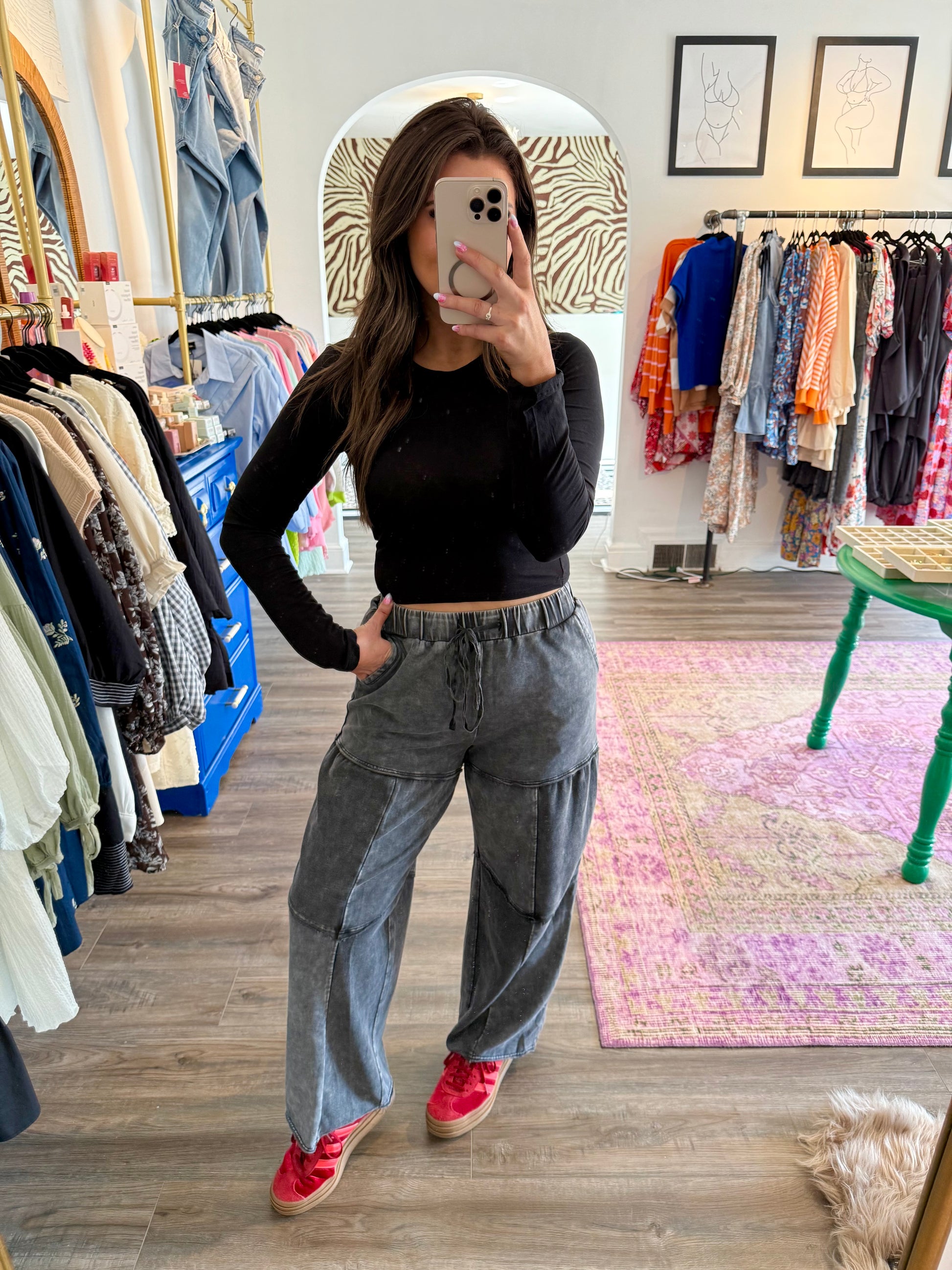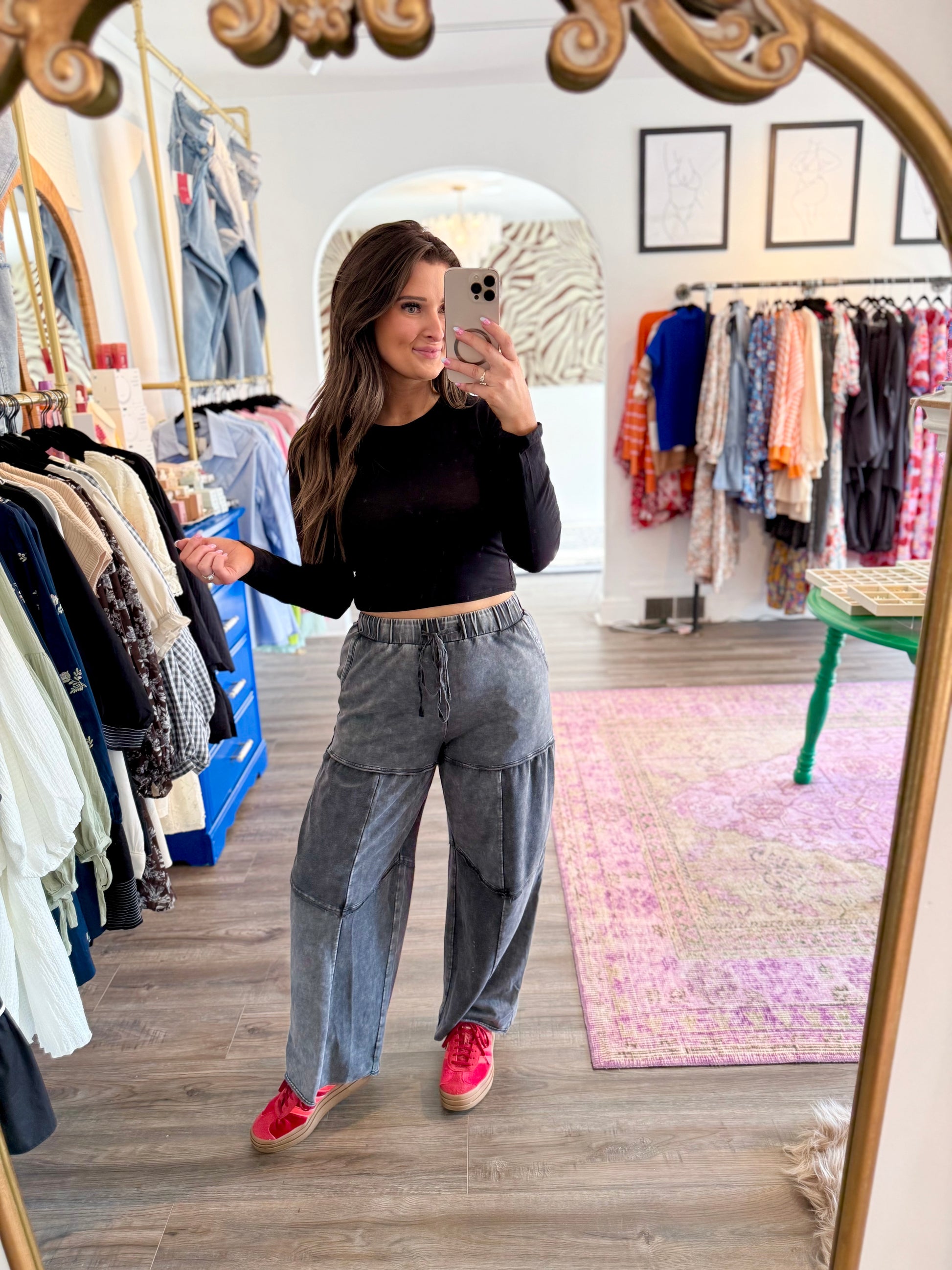 Our favorite basics are back this fall/winter in long sleeve! Smooths everything. Crew neckline, super soft and versatile! A great layering piece or wear as is. Also comes in brown and heather oatmeal! Cropped fit, TTS!