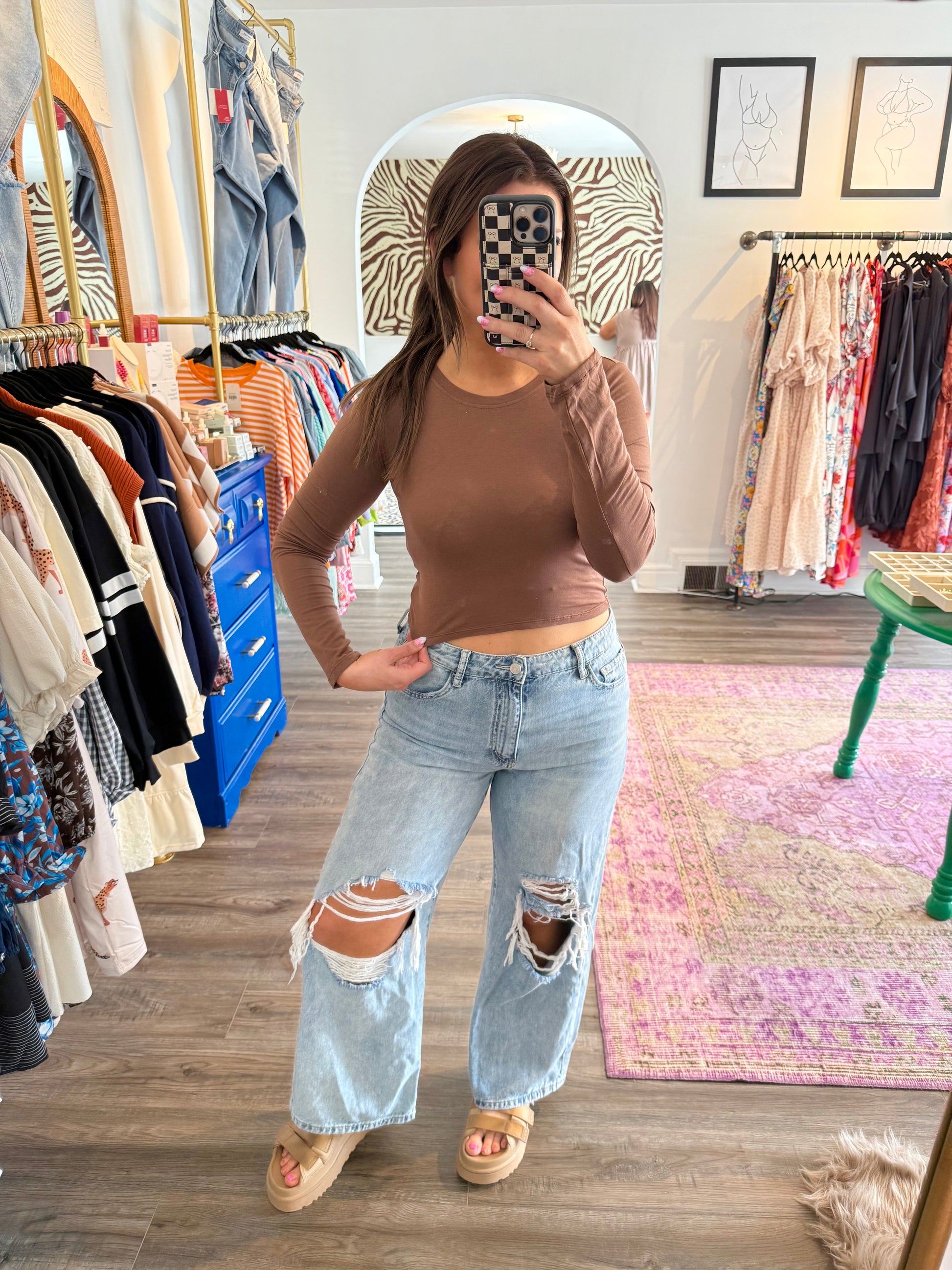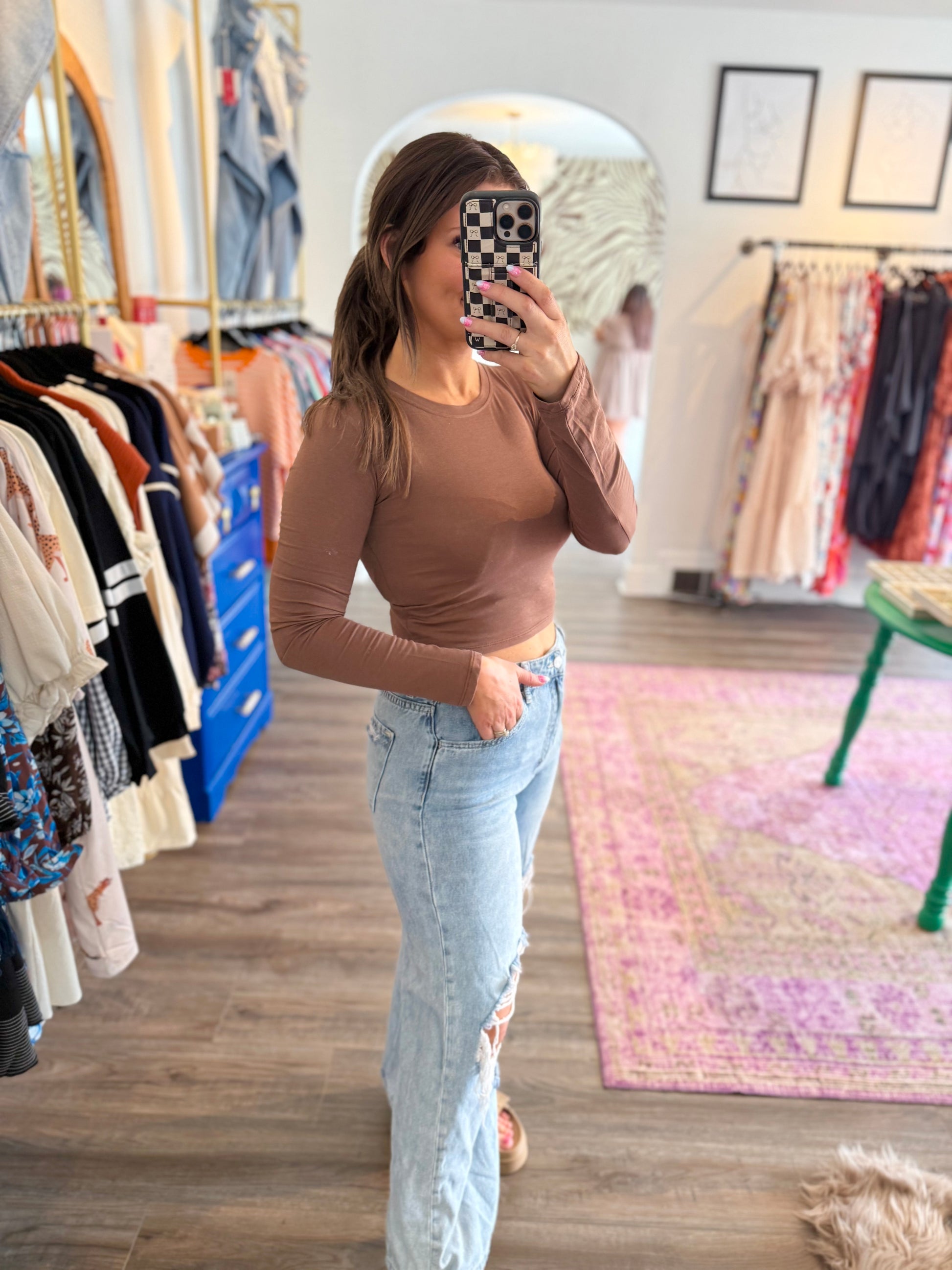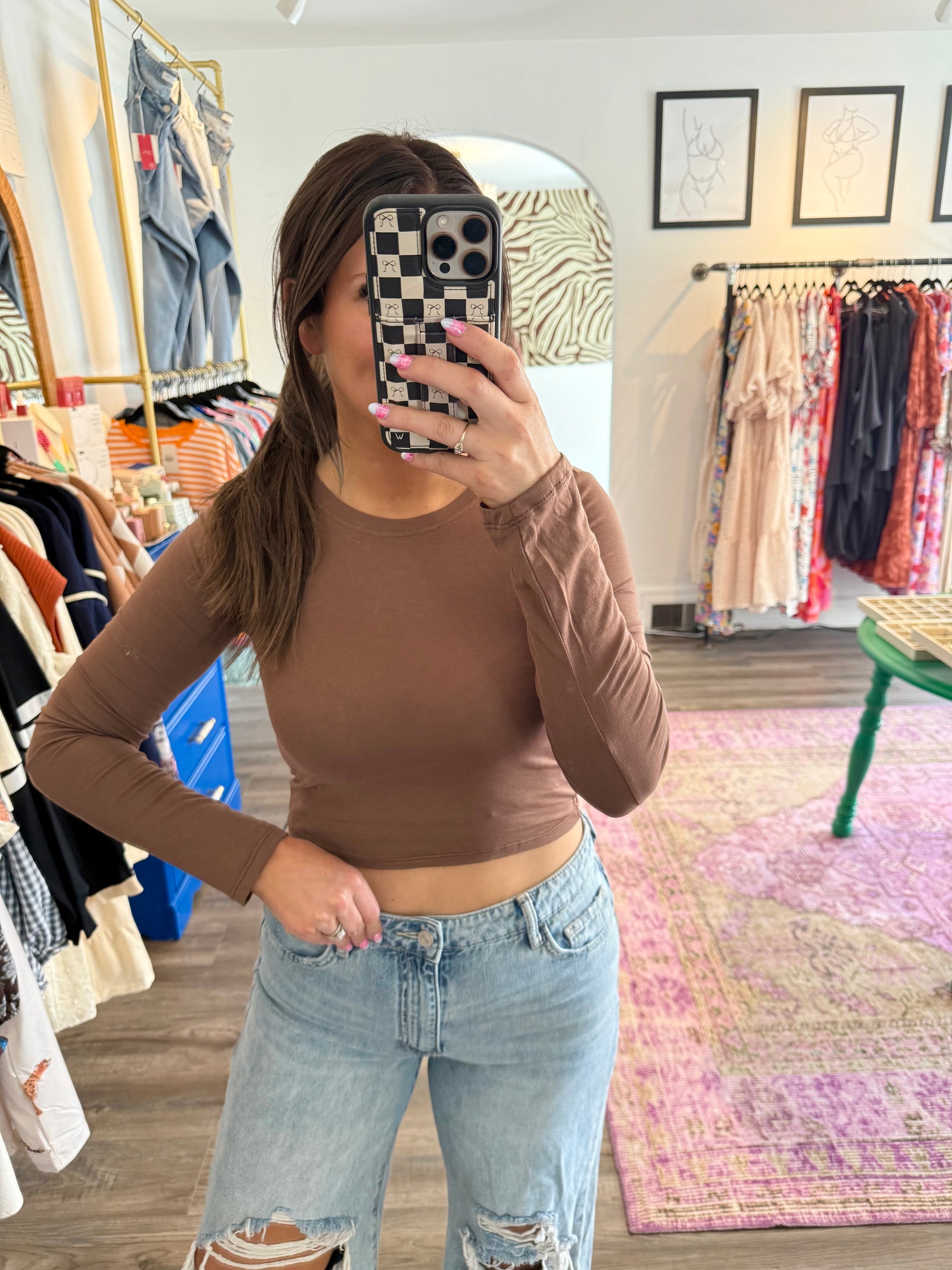 Our favorite basics are back this fall/winter in long sleeve! Smooths everything. Crew neckline, super soft and versatile! A great layering piece or wear as is. Also comes in black and heather oatmeal! Cropped fit, TTS!
