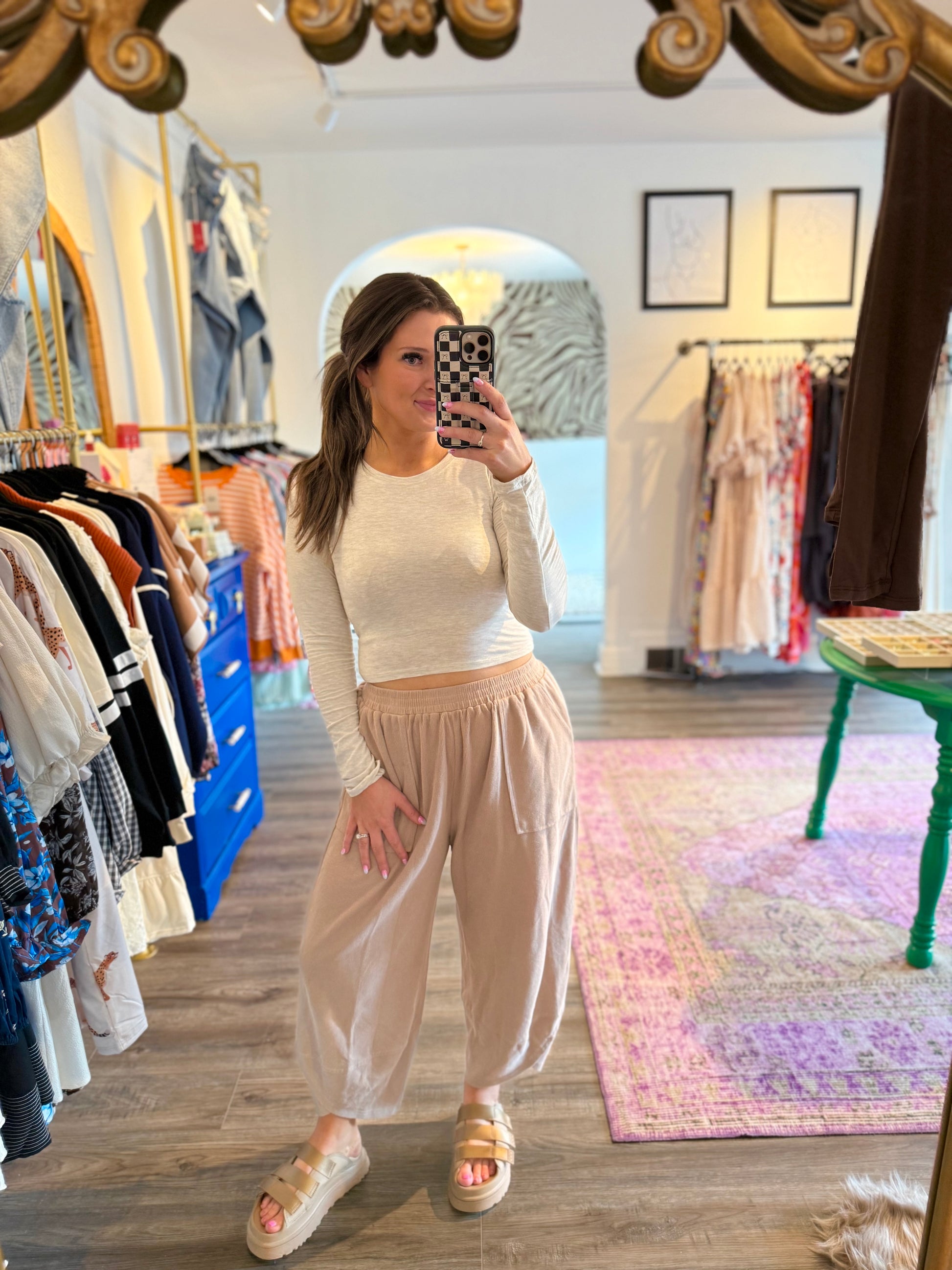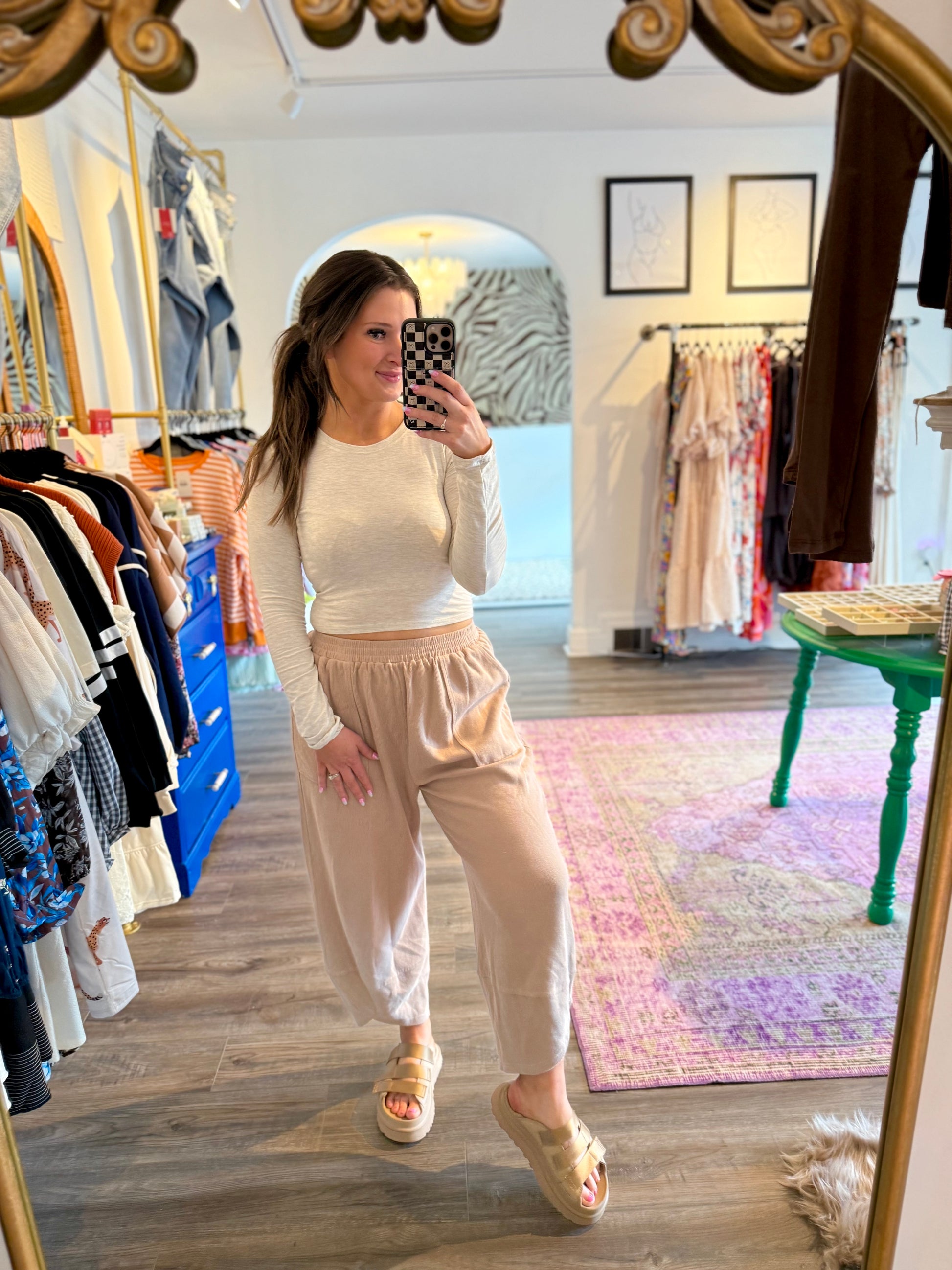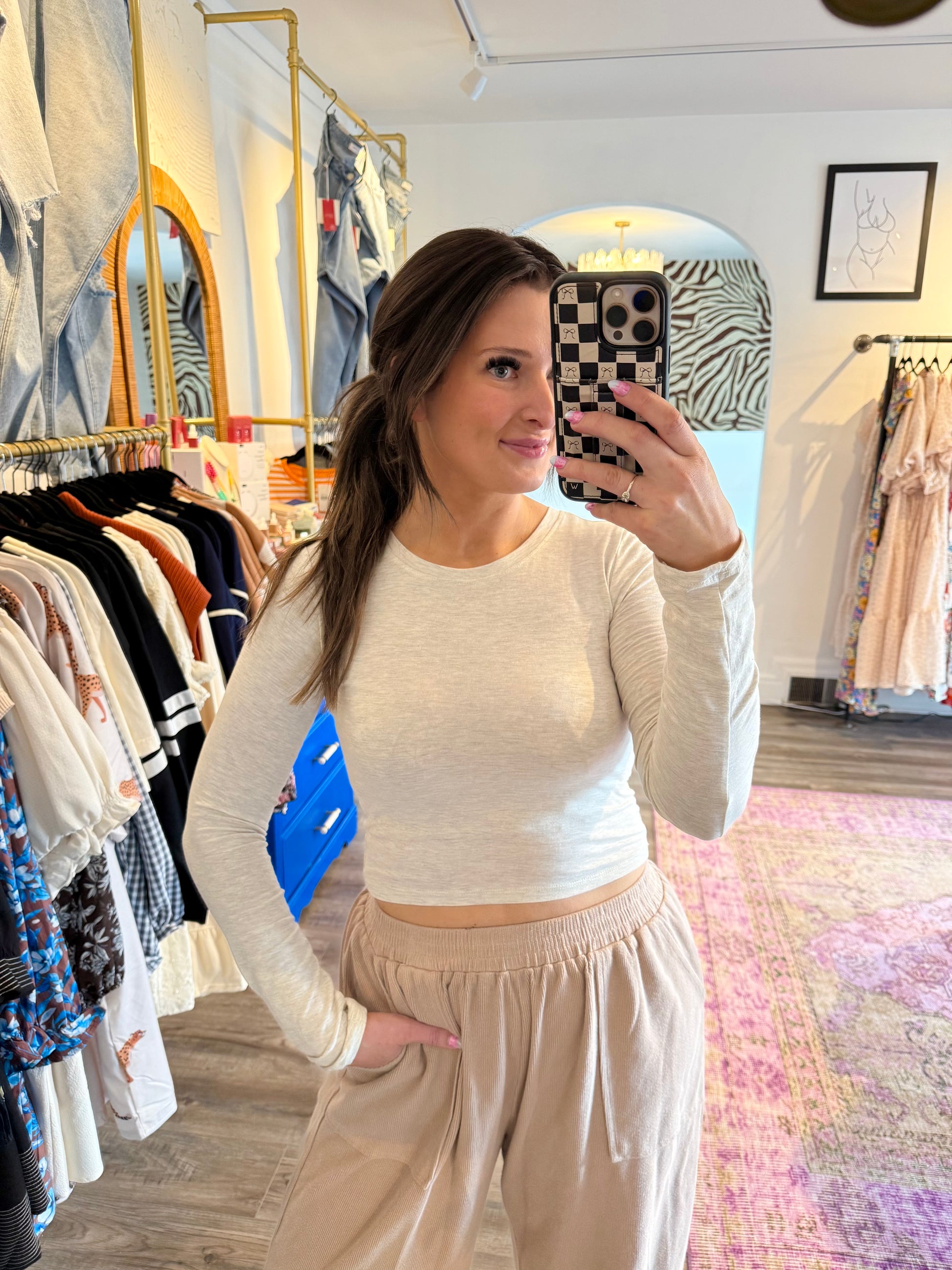 Our favorite basics are back this fall/winter in long sleeve! Smooths everything. Crew neckline, super soft and versatile! A great layering piece or wear as is. Also comes in black and brown! Cropped fit, TTS!