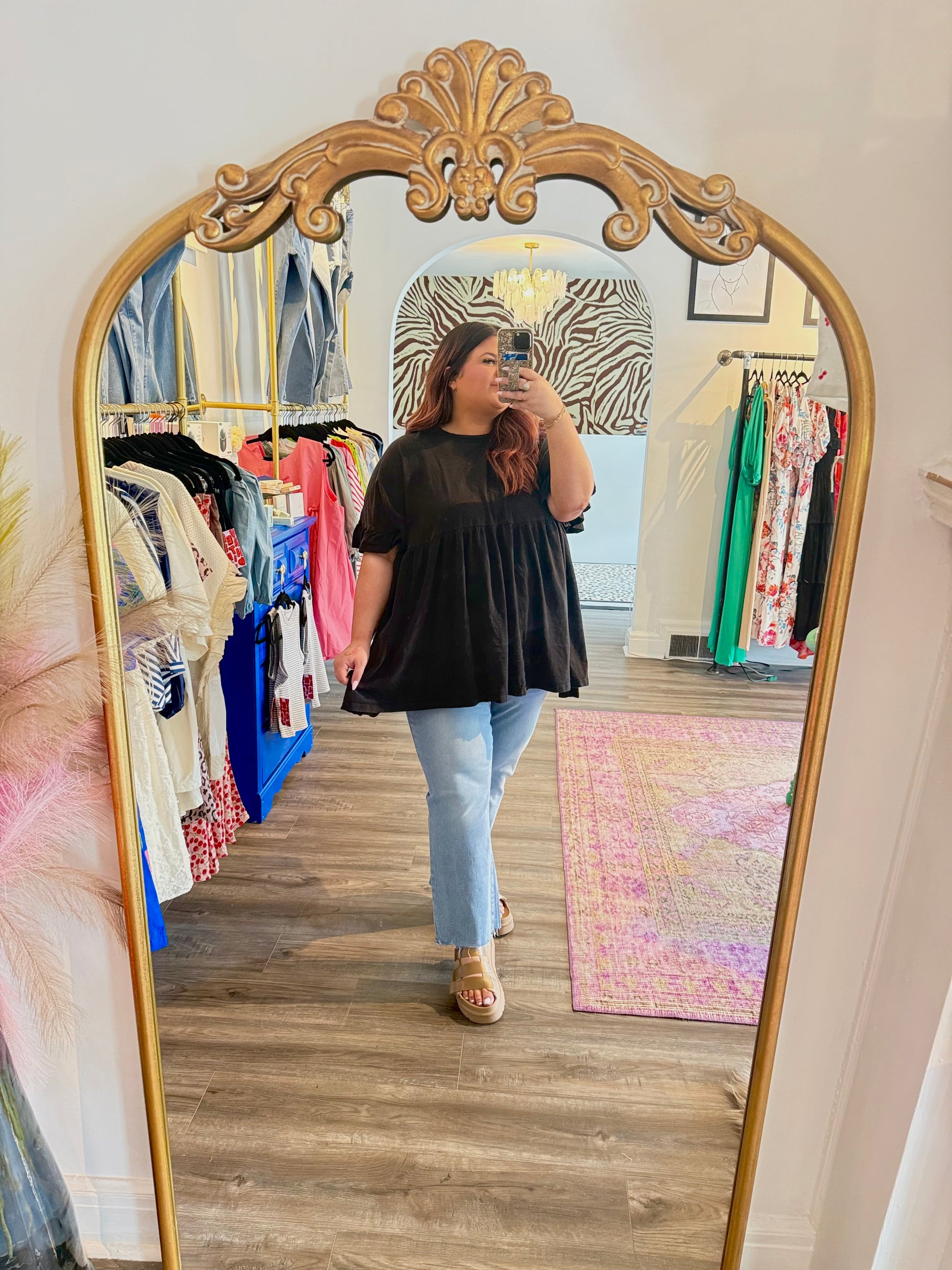 Get ready to turn heads with the Jayla Denim by Veveret! These cropped jeans feature a playful kick flare bottom and a trendy raw edge hem, crafted from light wash, stretchy denim that moves with you. Perfectly comfy for school or work, they’re a fan favorite that flies off the shelves. Slip into these and enjoy style that stretches as much as your day does!