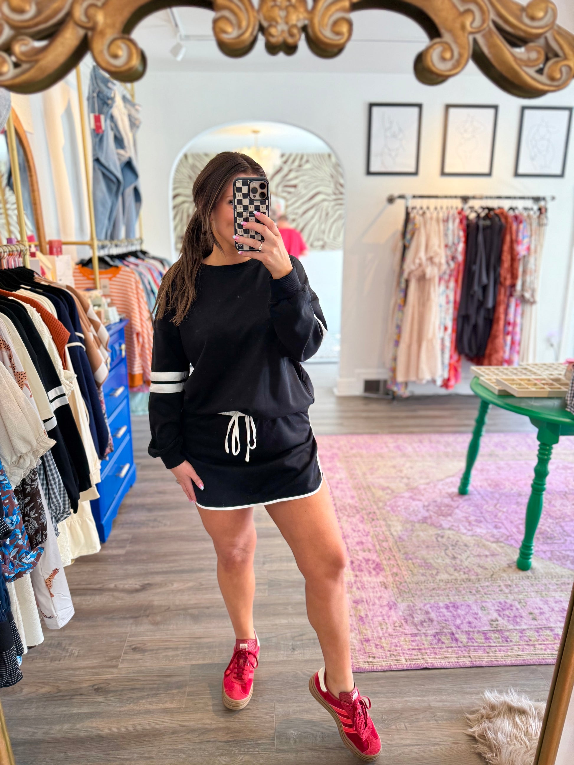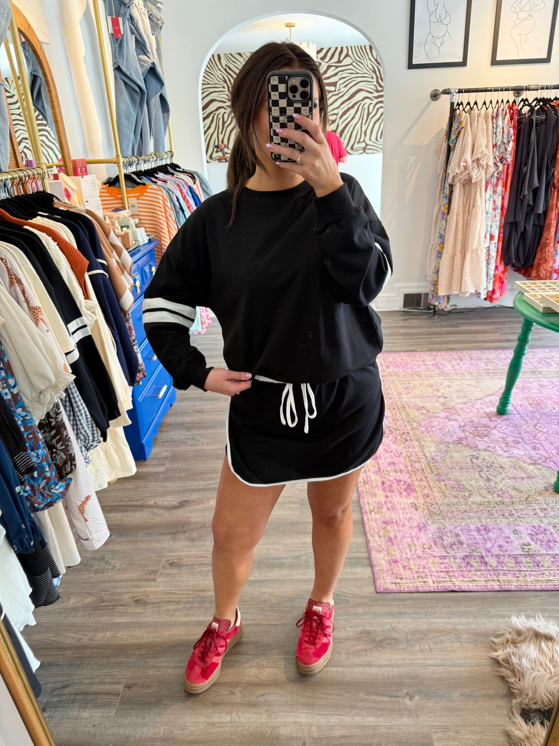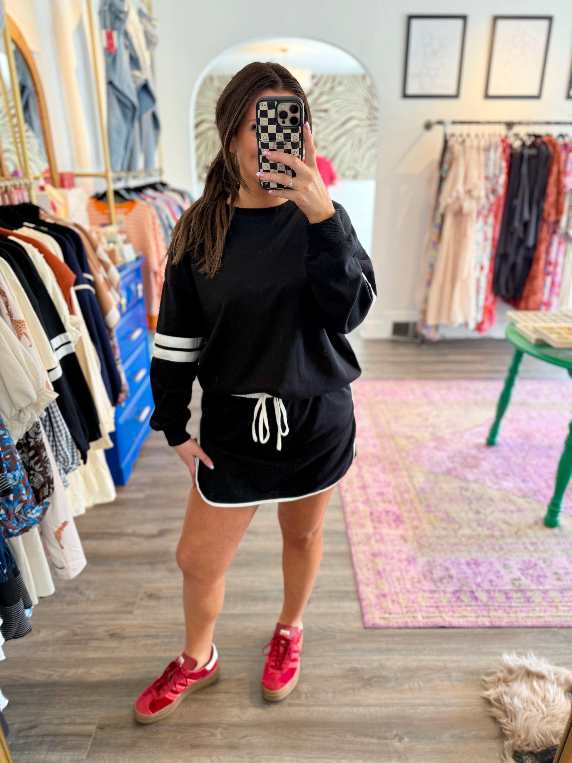 Meet the Rad Set in sleek black—your new go-to for effortless style and comfort. This super versatile set features a flattering top paired with a skort bottom that moves with you. True to size and designed for all-day wear, just add your favorite sneakers to step up your athleisure game with playful ease. Also comes in orange!
