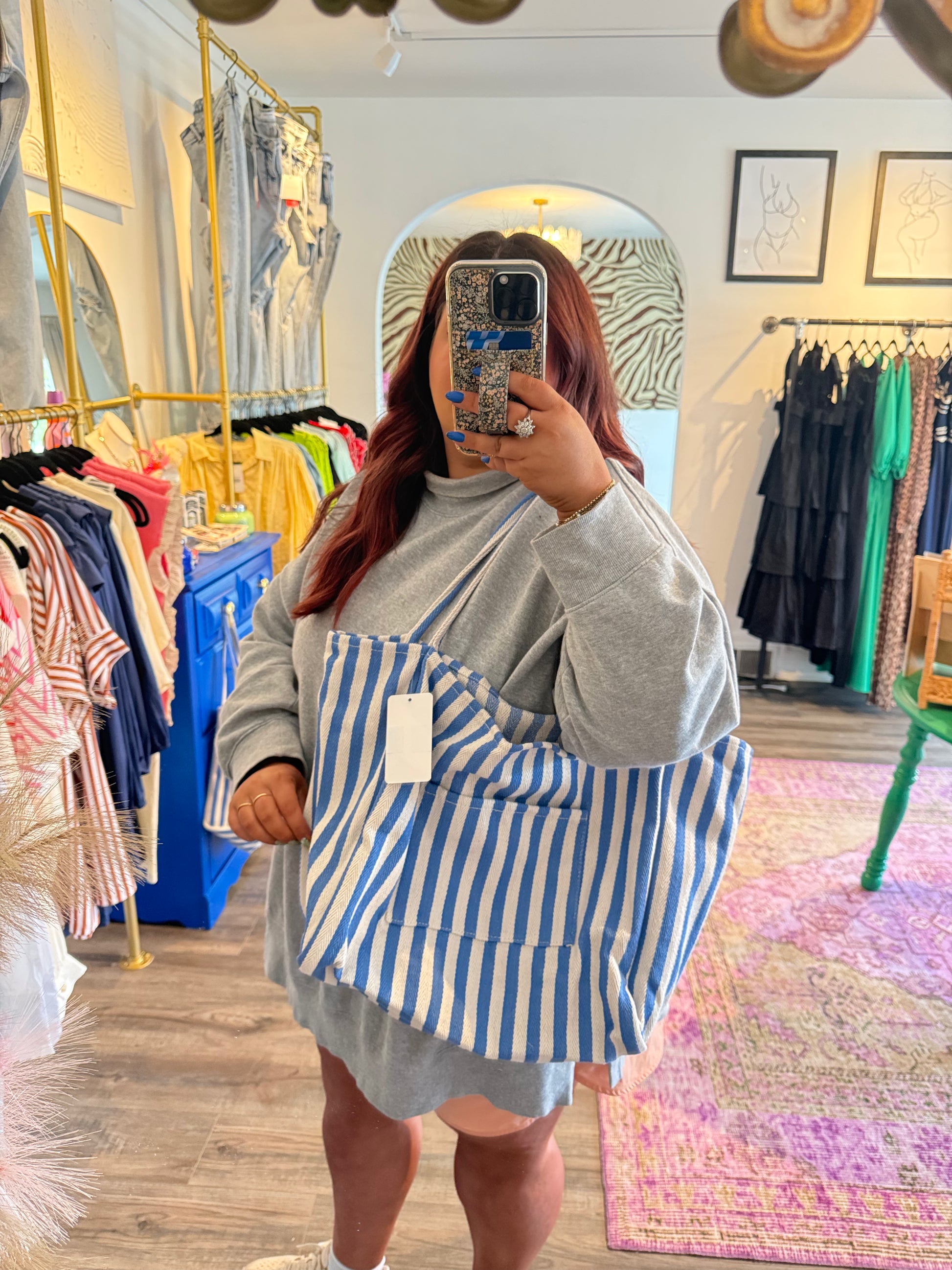 Organic Striped Trending Double Pocket Tote Bag, this stylish tote features a classic striped design with spacious front pockets for easy access to your essentials. The roomy interior and sturdy handles make it perfect for shopping, commuting, or casual outings. Whether you are heading to the market, beach, or cafe this tote blends functionality with timeless style.